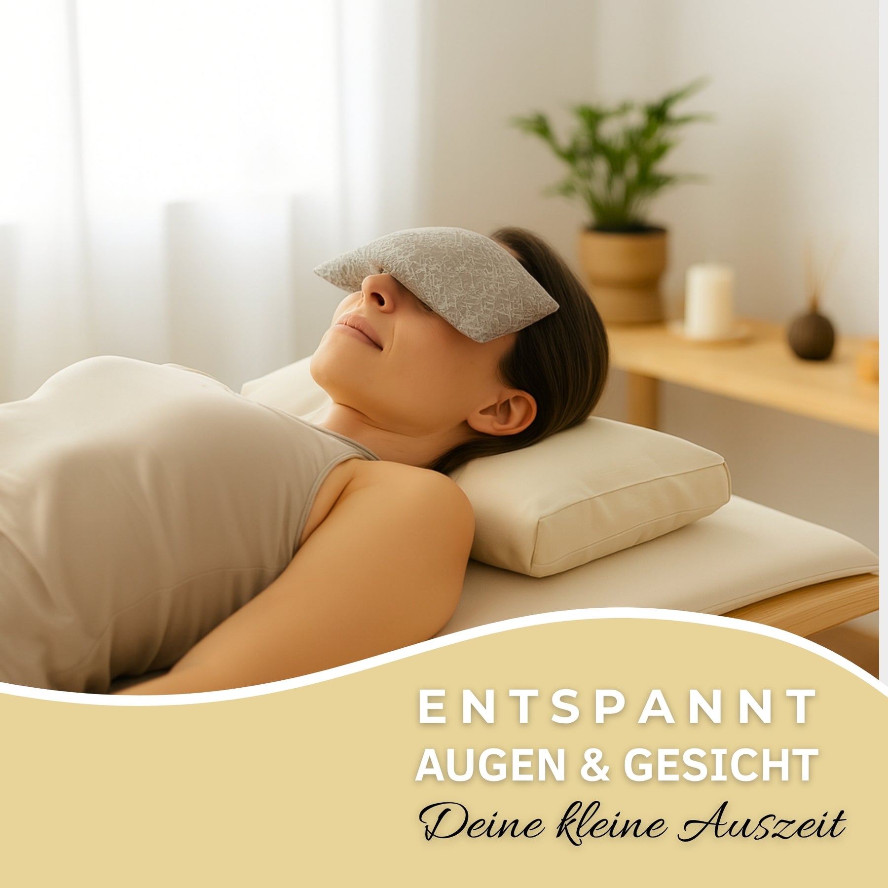 Wenn du deine Augen mit dem Augenkissen entspannst, lösen sich oft auch Spannungen in Augenbrauen, Wangenknochen und Schläfen. Das Kissen kann bei Kopfschmerzen und verspannten Muskeln helfen. Die Leinsamen sorgen dafür, dass sich das Kissen sanft der Form deines Kopfes anpasst.